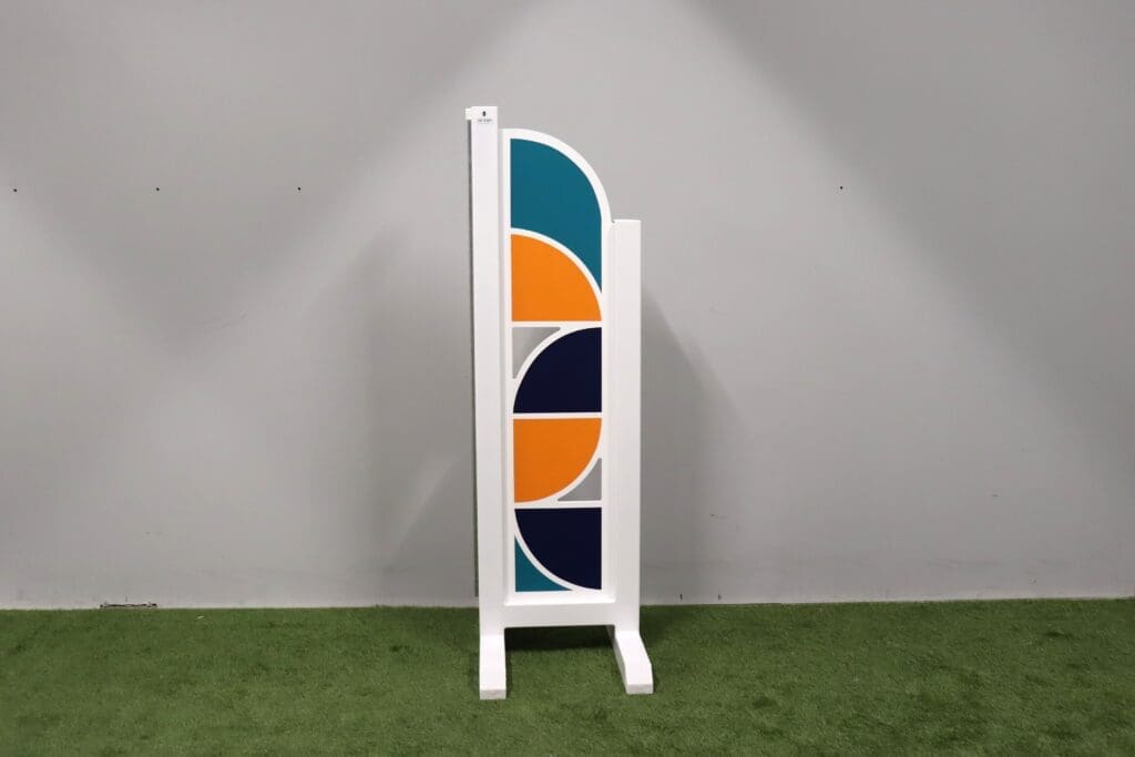 wit ALU frame met één enkele watervaste hardhouten plaat die IN het frame schuift – MELOENGEEL PURPER DONKERGROEN